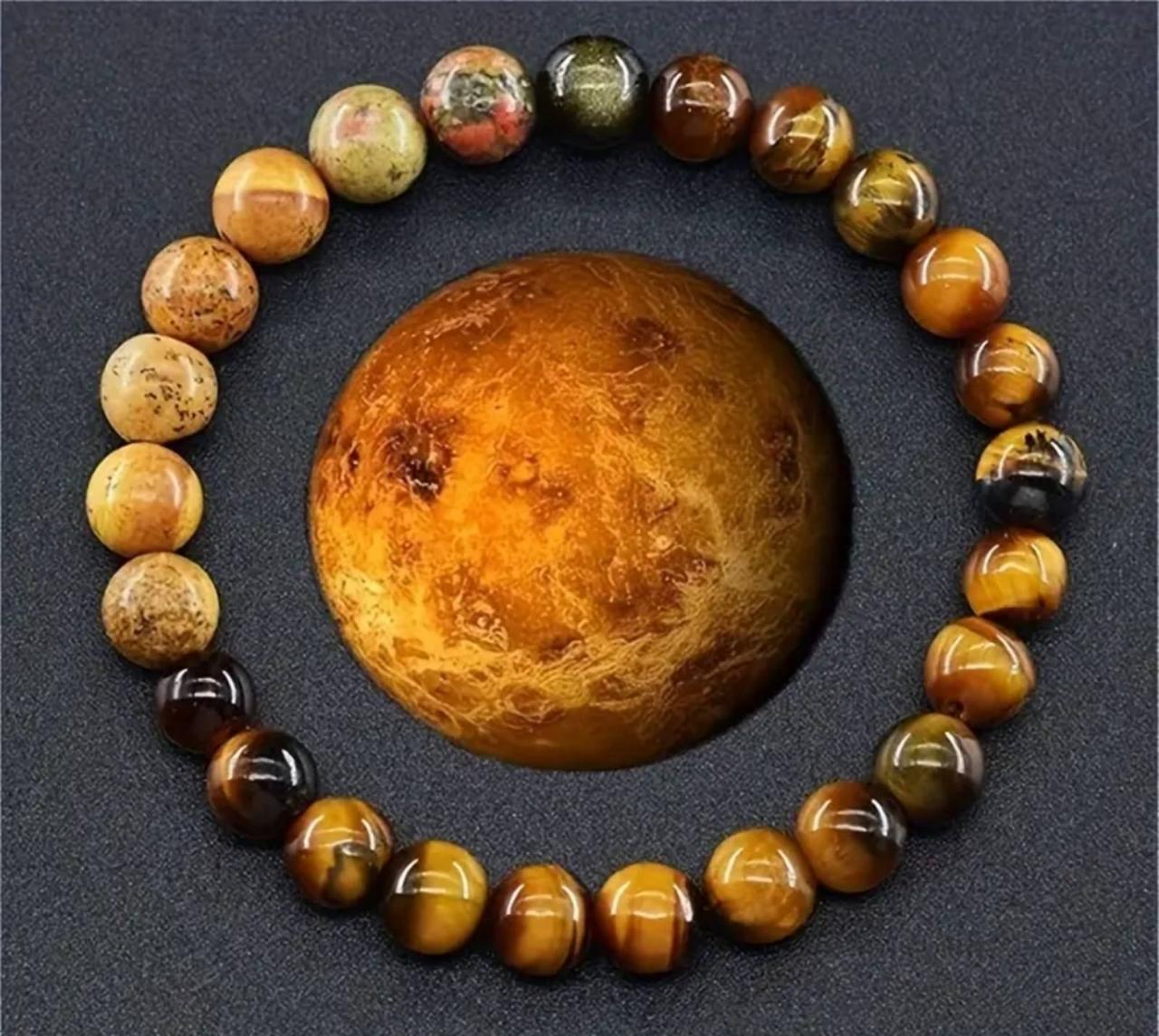 Цей браслет втілює ніжну та привабливу енергію Венери – планети кохання, краси та чуттєвості. Його теплі золотисті та м’які коричневі відтінки наповнюють людину теплом, харизмою та жіночністю.